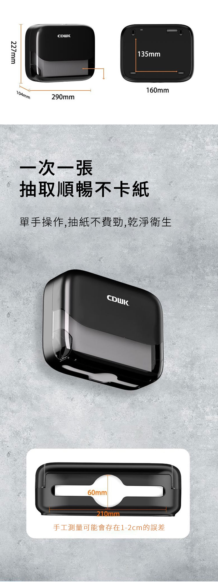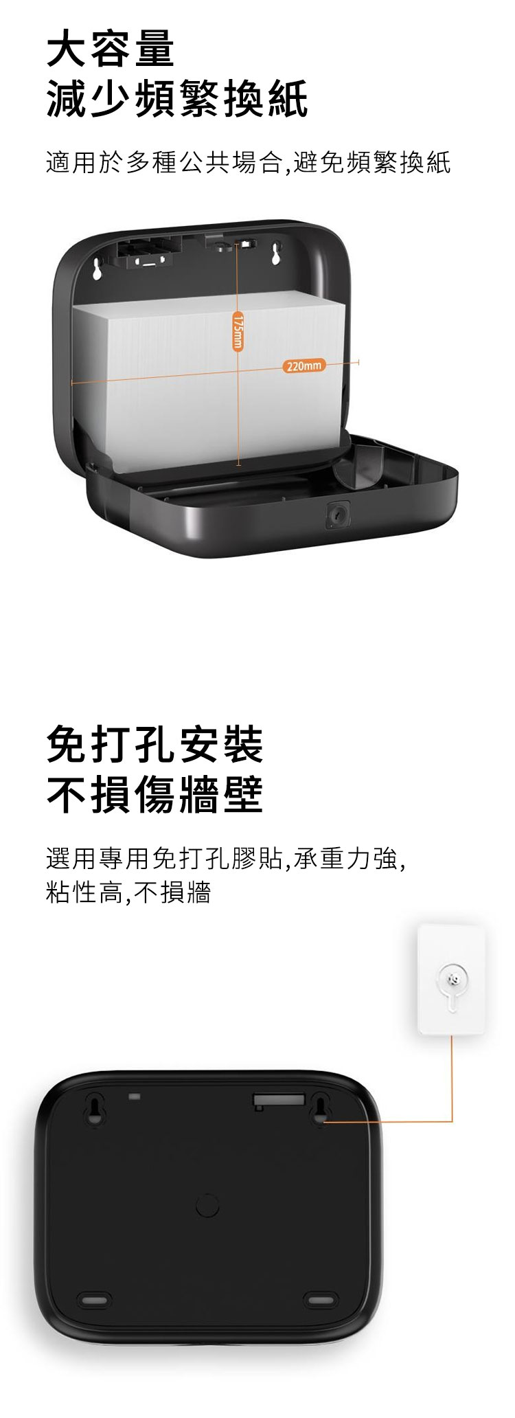 紙巾適配最大空間:222 × 80 ×180mm